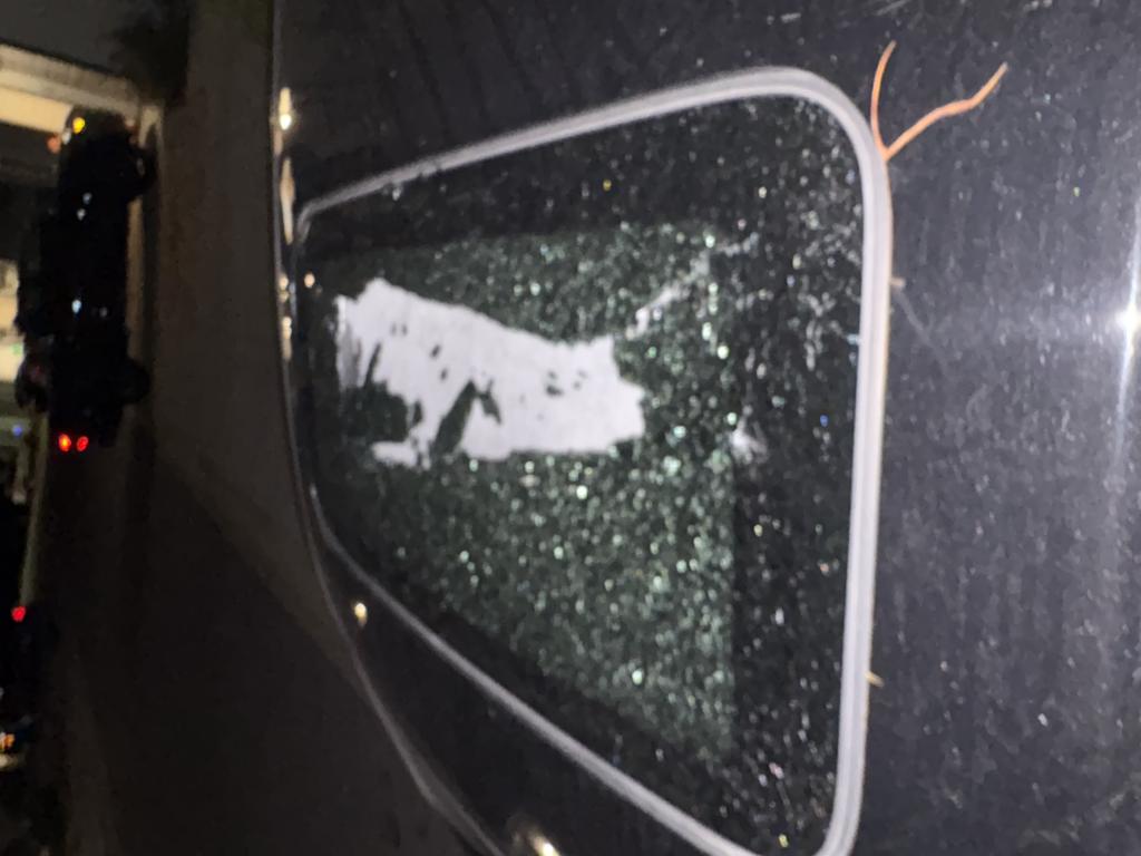My sun roof window just shattered. The engine middle of it!